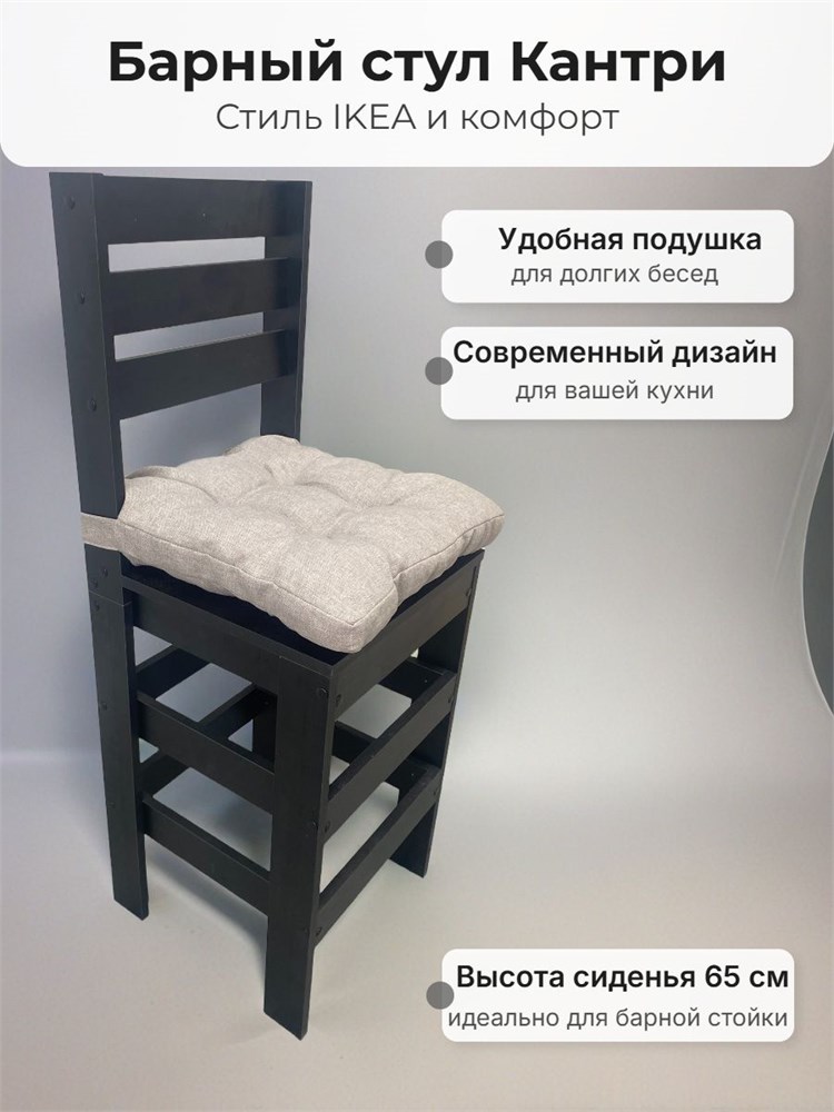 Барный кухонный деревянный стул Кантри черный ЛДСП с подушкой рогожка бежевая (высота сиденья 65 см)
