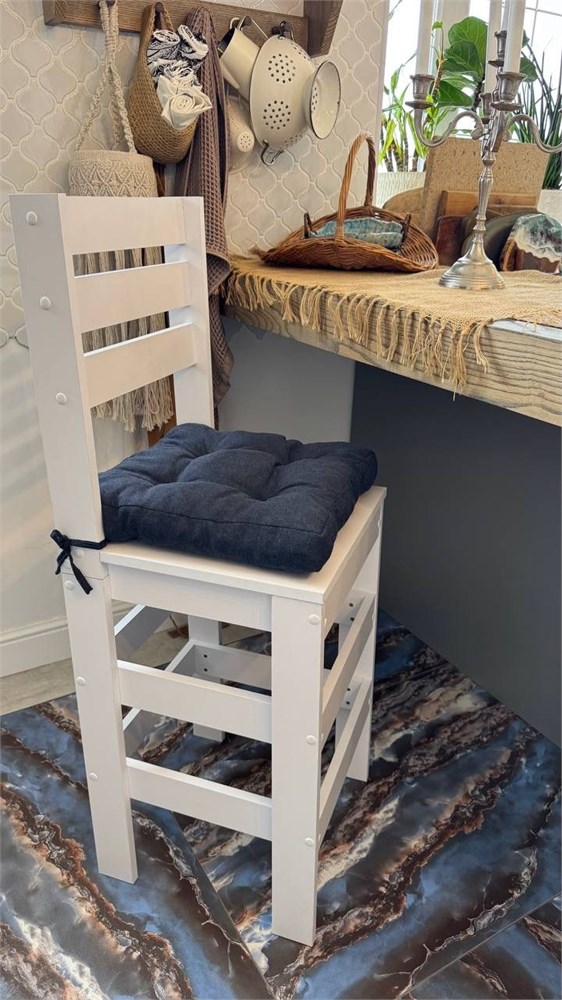 Барный кухонный стул Кантри New Victoria с подушкой рогожка индиго (высота сиденья 80 см)