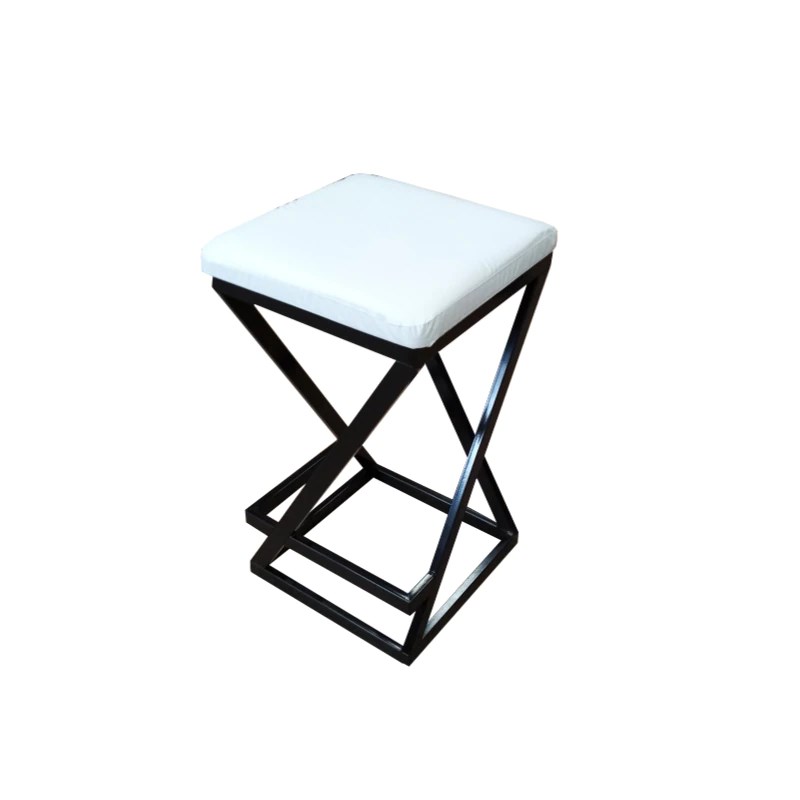 Барный стул без спинки Лофт с мягким сиденьем, (высота сиденья 65 см), кожа белая, каркас черный