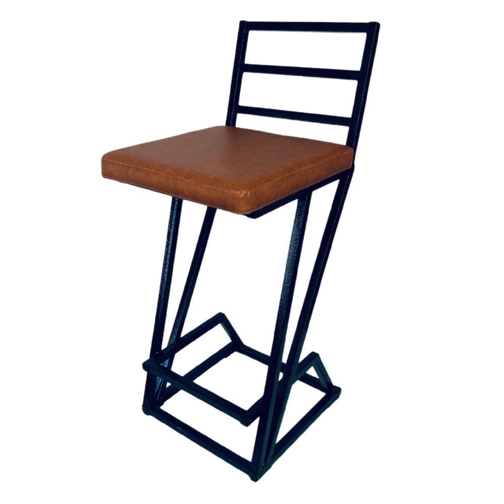 Барный стул Лофт Nova с мягким сиденьем, кожа коричневая, каркас серый металлик (высота сиденья 85 см)