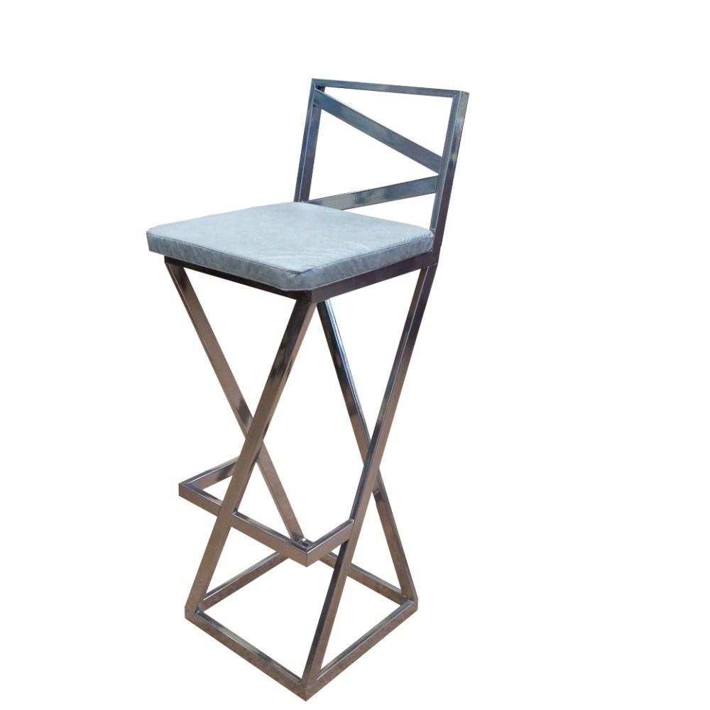 Барный стул Лофт с мягким сиденьем, кожа серая, каркас серый металлик (высота сиденья 85 см)