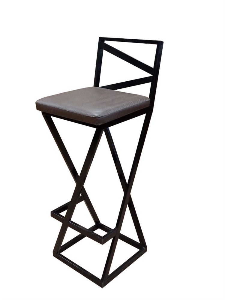 Барный стул Лофт с мягким сиденьем, кожа шоколадная, каркас черный (высота сиденья 85 см)