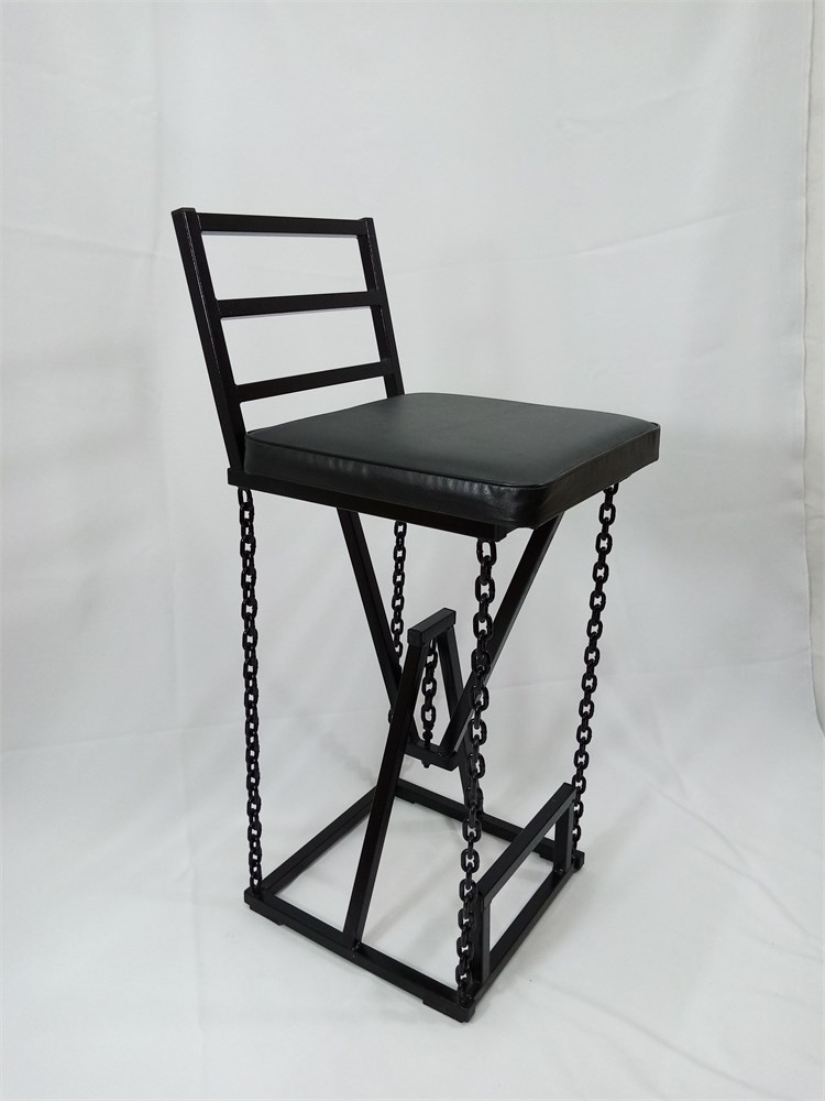 Барный стул на цепях Лофт с мягким сиденьем, кожа черная, каркас черный (высота сиденья 85 см)