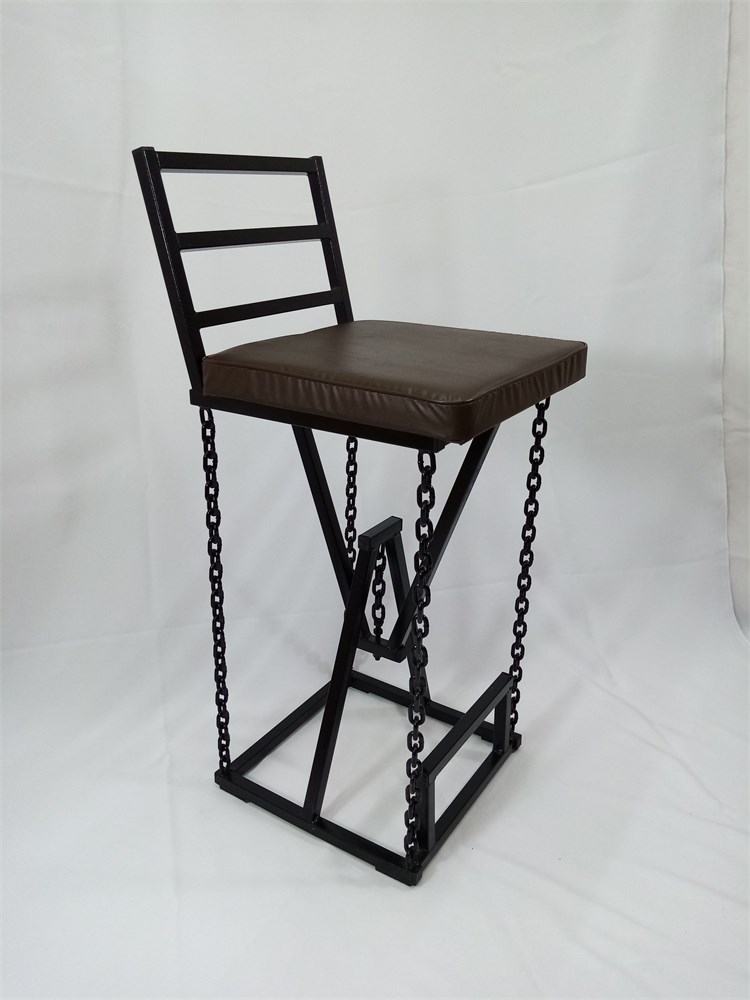 Барный стул на цепях Лофт с мягким сиденьем, кожа шоколадная, каркас черный (высота сиденья 85 см)