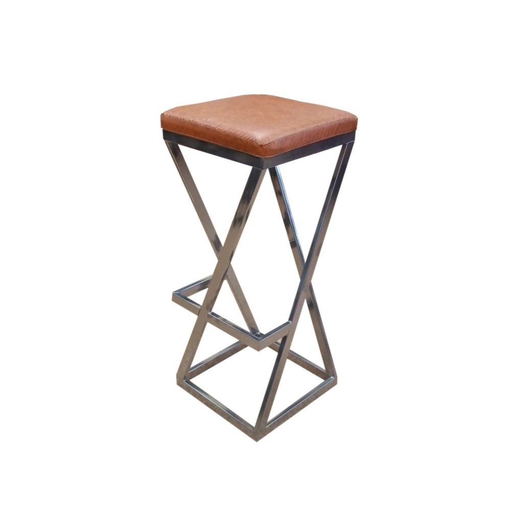 Барный табурет Лофт с мягким сиденьем, кожа коричневая, каркас серый металлик (высота сиденья 85 см)