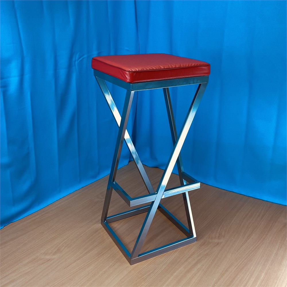 Барный табурет Лофт с мягким сиденьем, кожа красная, каркас серый металлик (высота сиденья 85 см)