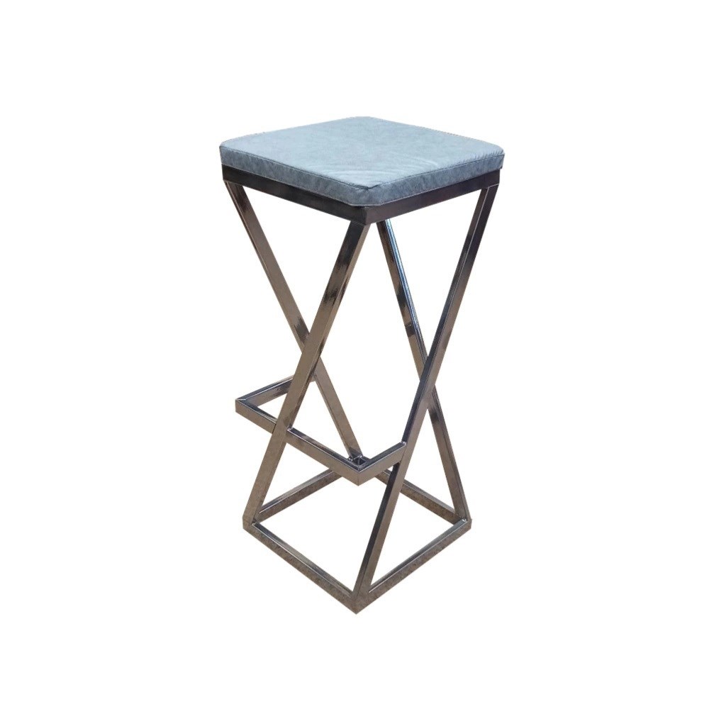 Барный табурет Лофт с мягким сиденьем, кожа серая, каркас серый металлик (высота сиденья 85 см)