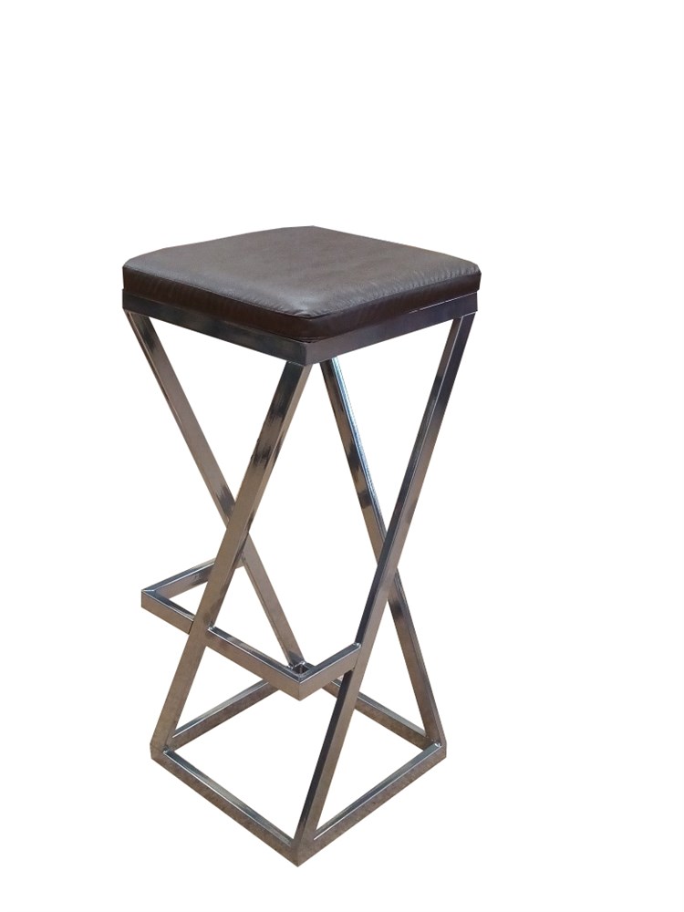 Барный табурет Лофт с мягким сиденьем, кожа шоколадная, каркас серый металлик (высота сиденья 85 см)