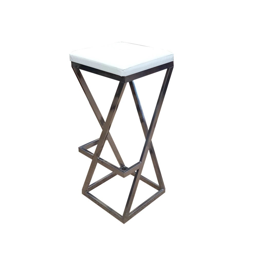 Барный табурет Лофт с мягким сиденьем, ткань индиго, каркас серый металлик (высота сиденья 85 см)