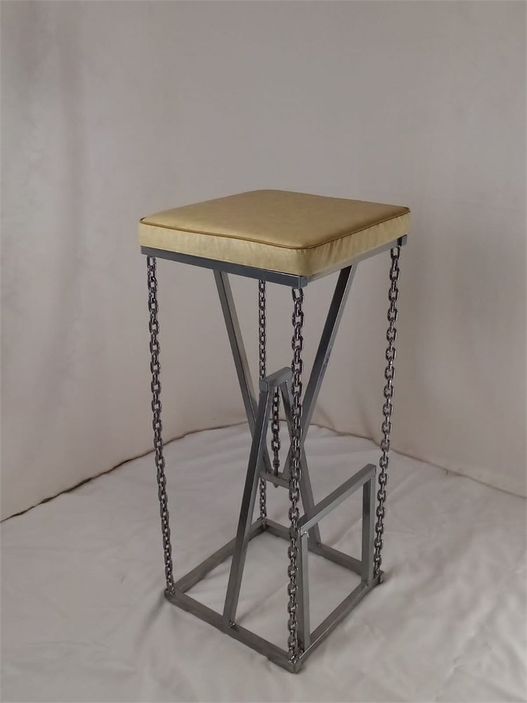 Барный табурет на цепях Лофт с мягким сиденьем, ткань бежевая, каркас хром (высота сиденья 85 см)