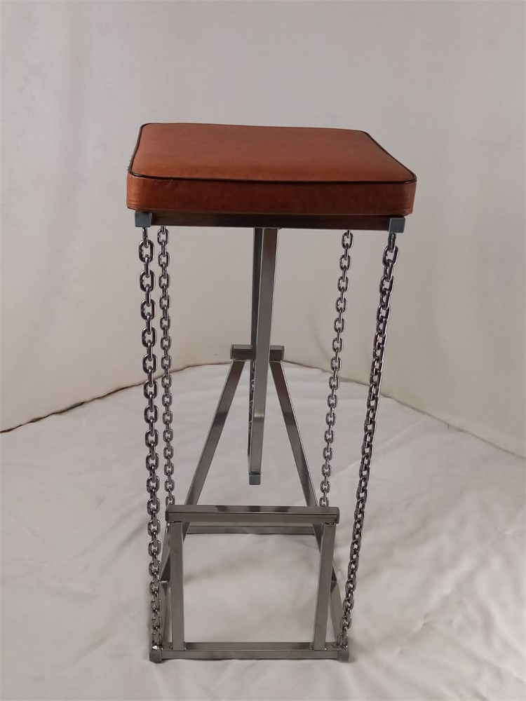 Барный табурет на цепях Лофт с мягким сиденьем, ткань индиго, каркас хром (высота сиденья 85 см)