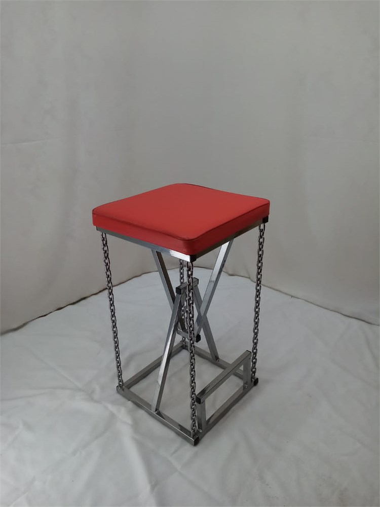 Барный табурет на цепях Лофт с мягким сиденьем, (высота сиденья 65 см), кожа красная, каркас черный