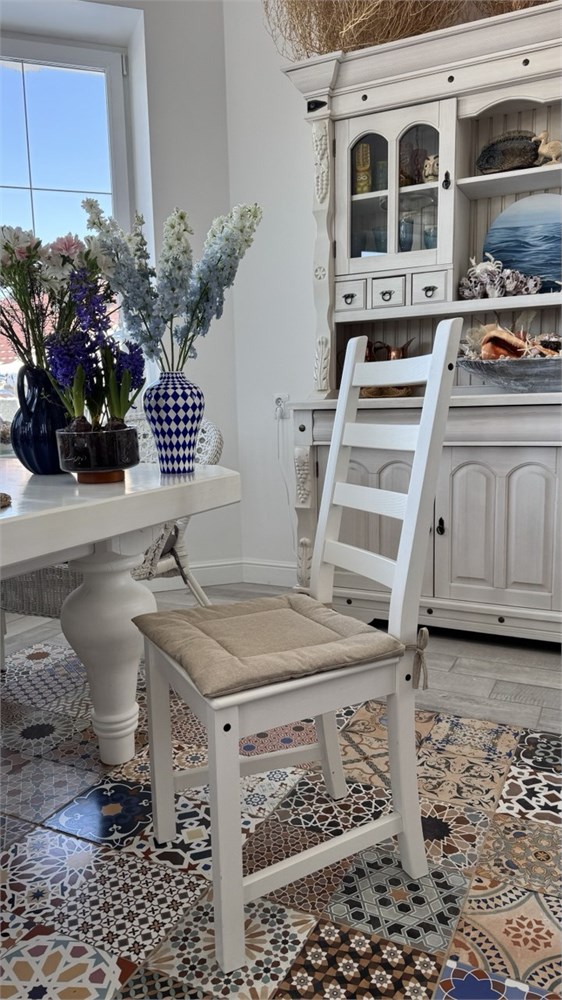 Подушка на стул тонкая New Victoria, на завязках, 40х40 см, рогожка бежевая