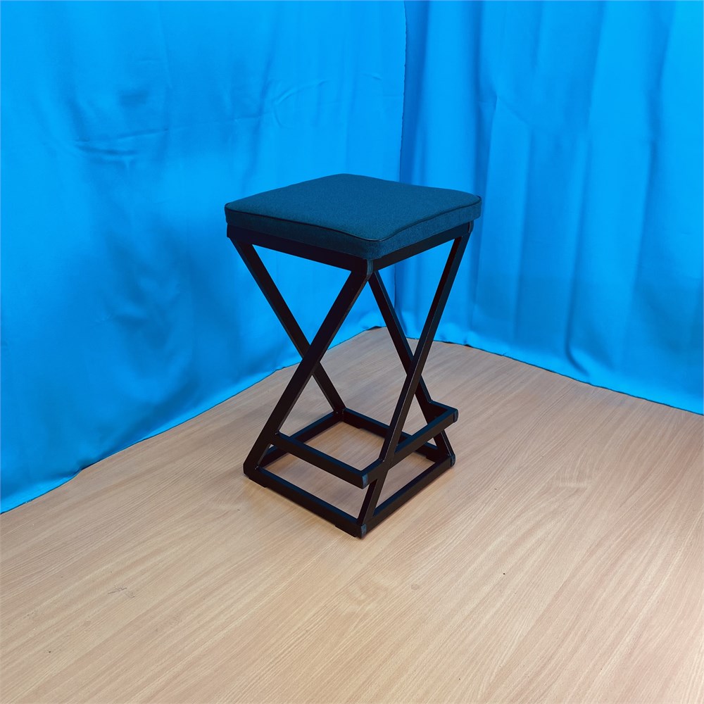 Полубарный табурет Лофт с мягким сиденьем, ткань индиго, каркас хром