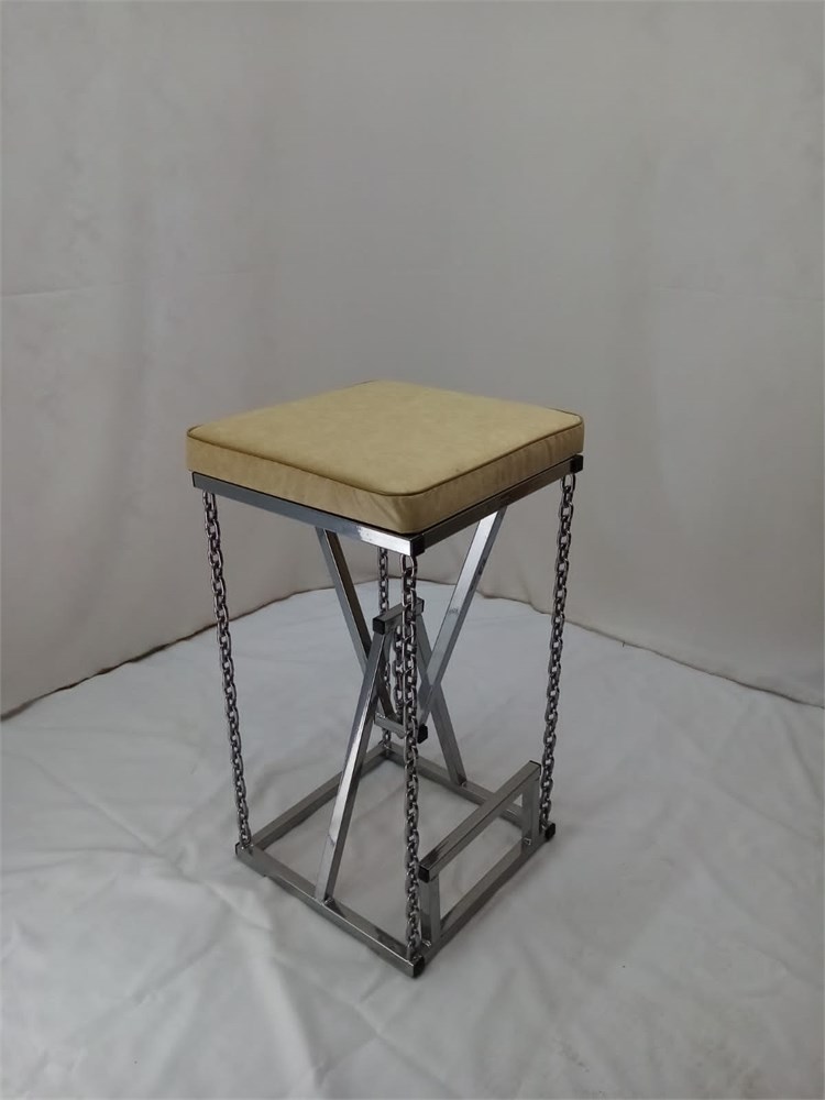 Полубарный табурет на цепях Лофт с мягким сиденьем, ткань бежевая, каркас черный