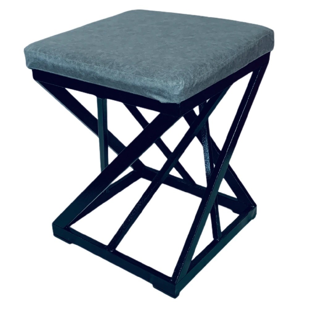 Табурет Лофт Crown с мягким сиденьем, кожа серая, каркас черный, (высота сиденья 45 см)