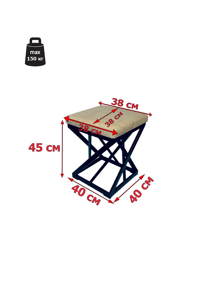 Табурет Лофт Crown с мягким сиденьем, ткань индиго, каркас хром (серебристый металлик), (высота сиденья 45 см)