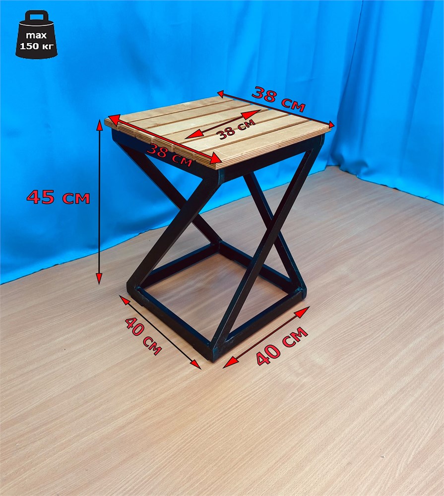 Табурет Лофт с деревянным сиденьем каркас черный, (высота сиденья 45 см)