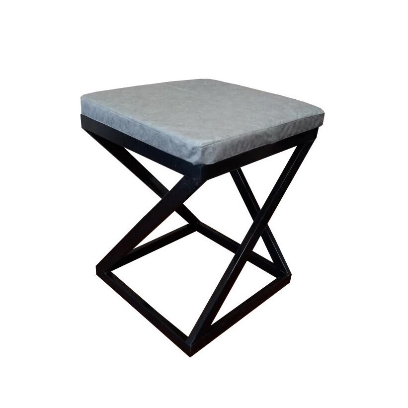 Табурет Лофт с мягким сиденьем, ткань серая, каркас черный