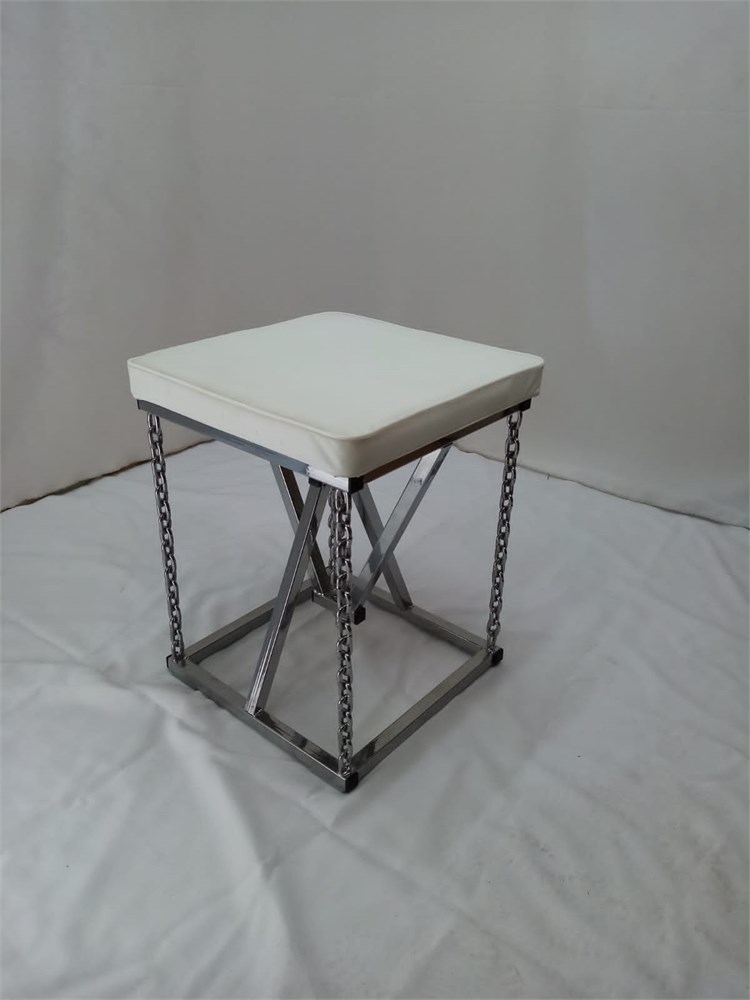 Табурет на цепях Лофт с мягким сиденьем, кожа белая, каркас черный