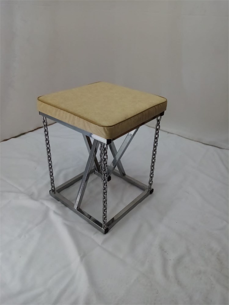 Табурет на цепях Лофт с мягким сиденьем, ткань бежевая, каркас черный